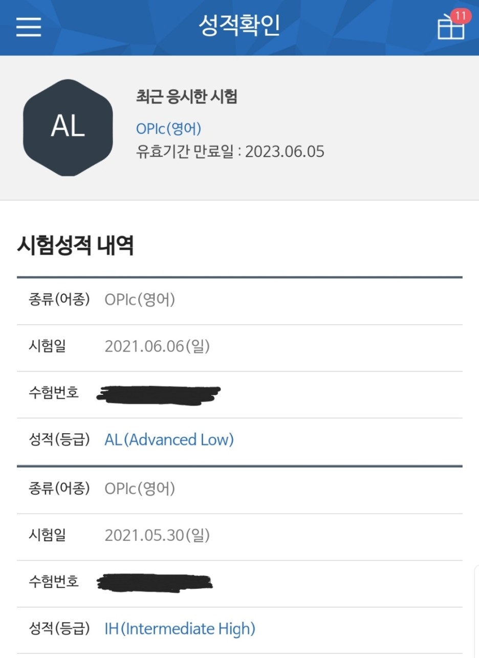 오픽은 평소에 시험 결과가 나오는데에 7일이 소요되지만, 일요일에 보는 시험은 5일밖에 안 걸린다고 합니다. 근데 5.30(일)에 봤던 시험 결과를 보고 난 뒤 너무 큰 충격을 받아 전 바로 다음 시험에 응시했고, 이번엔 꼭 AL을 받아 돈낭비를 하지 말아야겠다는 다짐을 했습니다.